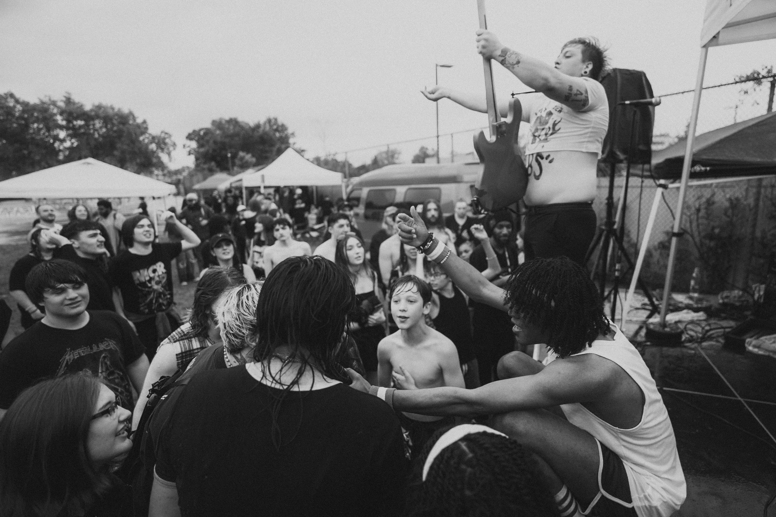 Even though the technical difficulties were at an all time high, the show did go on. There were a couple of other issues PTC faced during their set. As I stood on stage left, I could hear the speakers just cracking and cutting in and out like crazy as the water pooled inside of all the inputs just completely destroyed all the electronics. After running out to the front, the crowd started to actually find the energy to move around and put their hands up and enjoy the show. At one point, Richard brought his little sister on stage because she wanted to stage dive, and then at the last second, decided her nerves were a bit too much and she couldn't do it. But you could see her in the crowd from time to time singing along with the songs, enjoying the show. When the last song played, the energy was extremely high, the crowd got close to the stage, and they were able to finish with kind of a bang. After it was all over it was agreed, everything that could've gone wrong did. But the members of PTC are nothing if not determined. They didn’t quit and walk away. Instead, they pushed through all these obstacles with utmost professionalism. How many “successful” bands fold when the odds are stacked against them…?